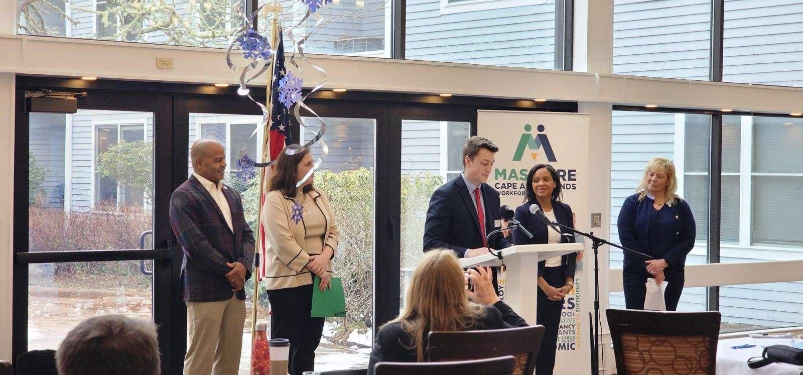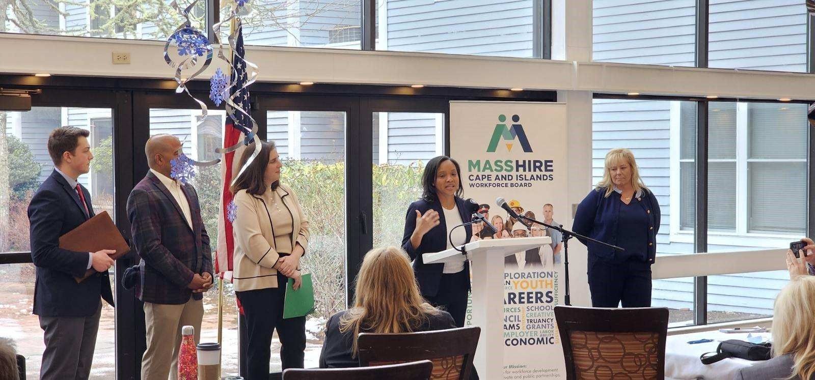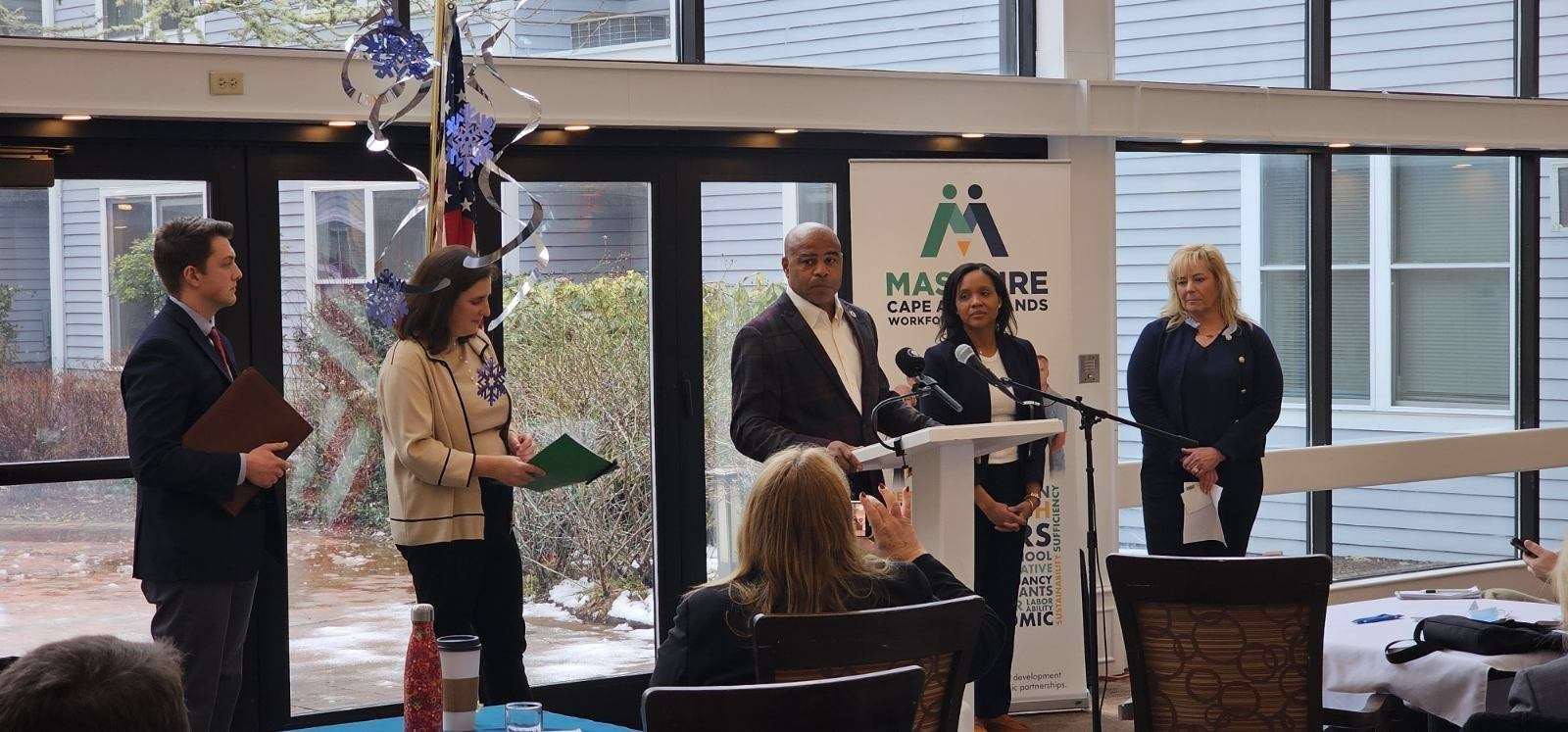 Some of the training happens through Upper Cape Regional Technical School in Bourne. Mary Burke, the school’s director of adult and continuing education, thanked state labor officials for supporting workers who need advancement, along with “employers in the region who are desperate for health care workers.” Health care workers are in high demand “and we are trying to help fill those gaps, but education and training is expensive, particularly for people who live in this area who are struggling to be able to afford to remain in the region,” Burke said.
