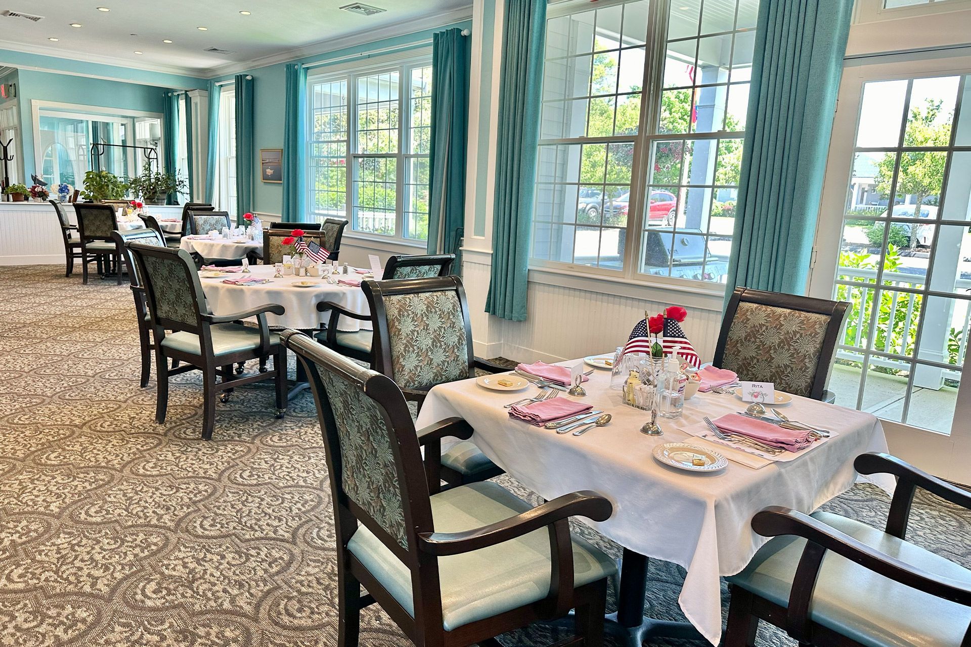 Residents at The Victorian enjoy beautifully appointed living rooms, lounges, and a dining room where the executive chef prepares exceptional gourmet meals. The common rooms are perfect for developing relationships and visiting with loved ones. Wide porches and courtyards overlook manicured grounds and deep blue hydrangeas that bloom all summer. For shopping, the charming Main Street of Chatham is just minutes away.